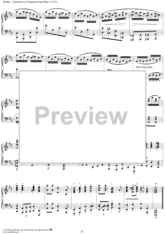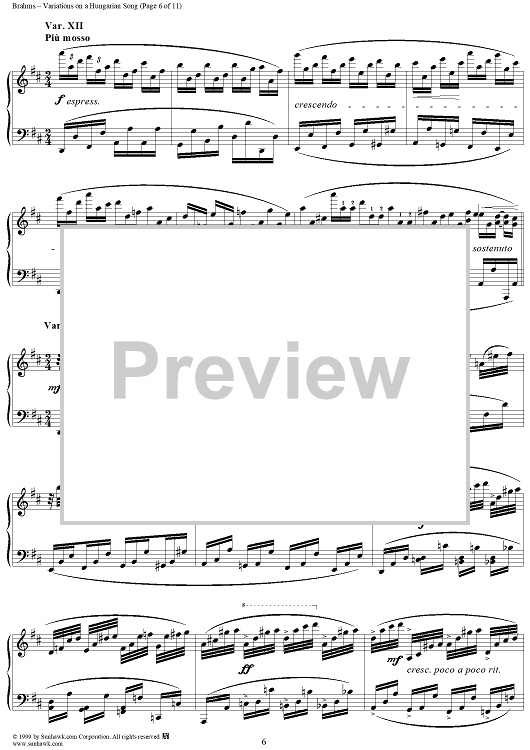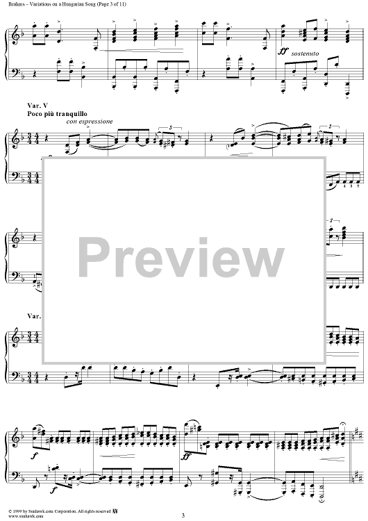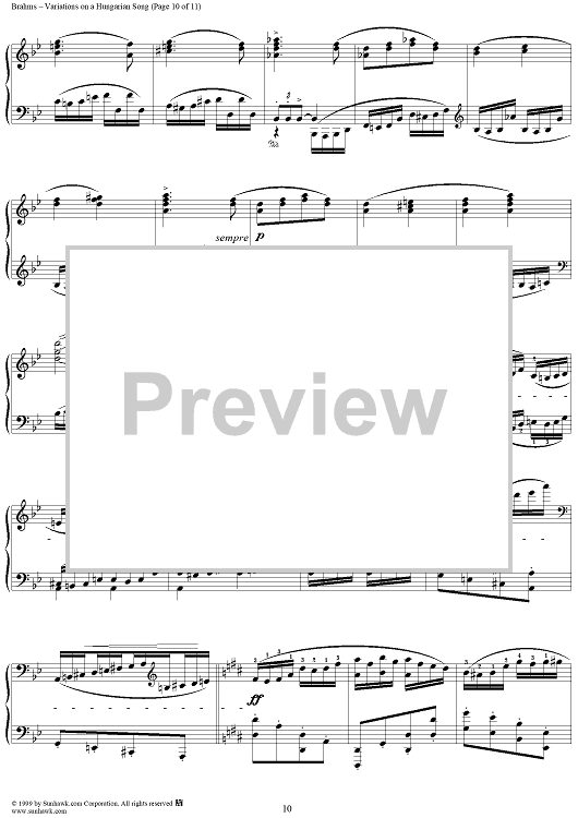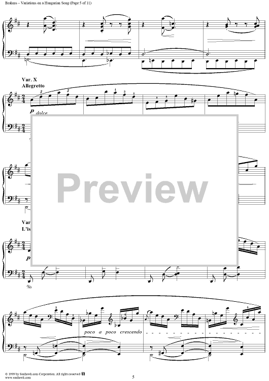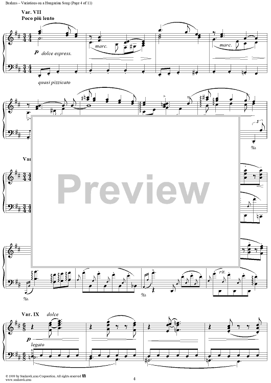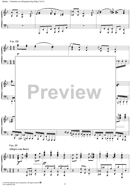 Digital Sheet Music for No. 2: Variations on a Hungarian Song by Johannes Brahms scored for Piano Solo; id:273762