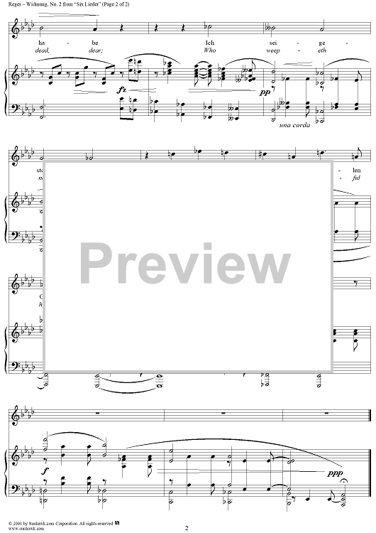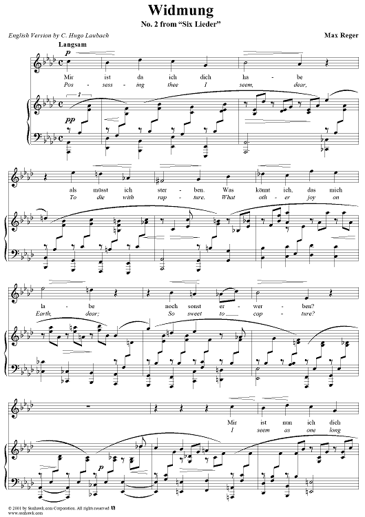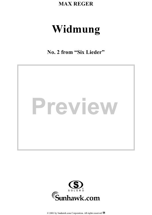 Digital Sheet Music for No. 2: Widmung by Max Reger scored for Voice/Piano; id:255557