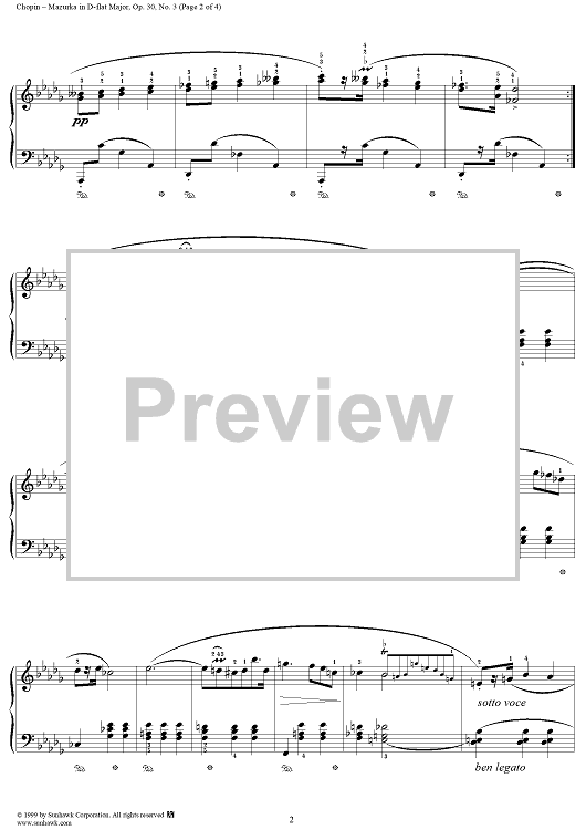 Digital Sheet Music for No. 20 in D-flat Major, Op. 30, No. 3 by Frederic Chopin scored for Piano Solo; id:118027