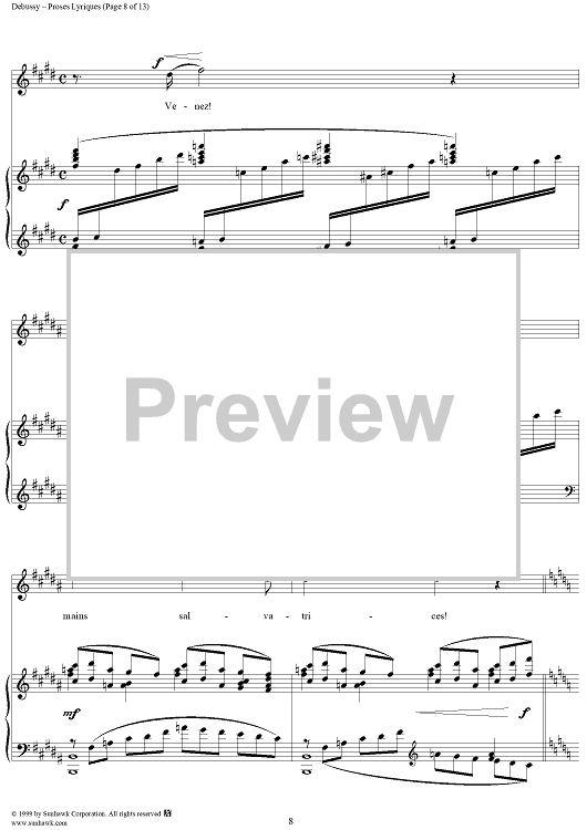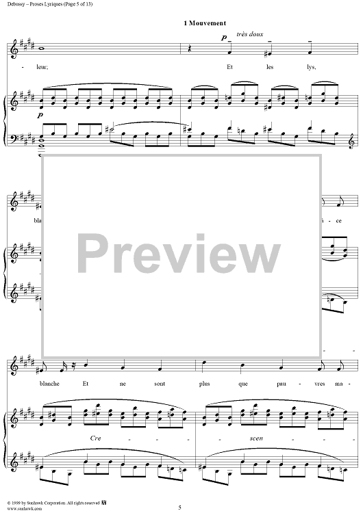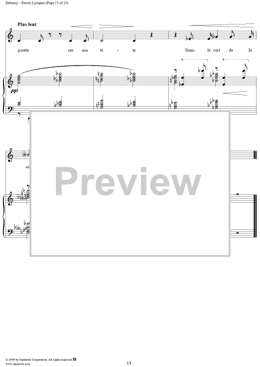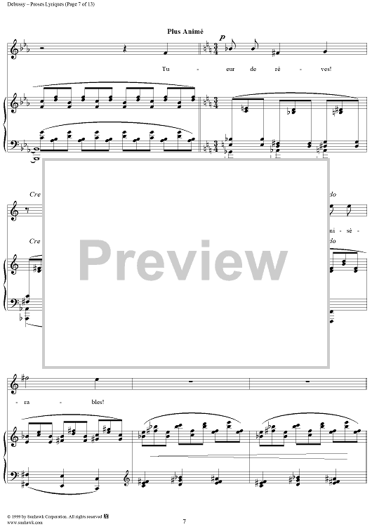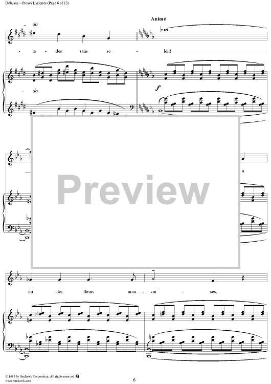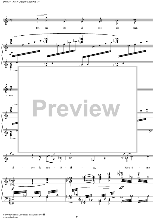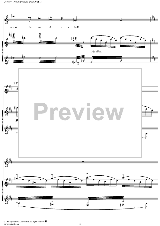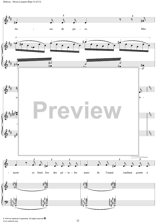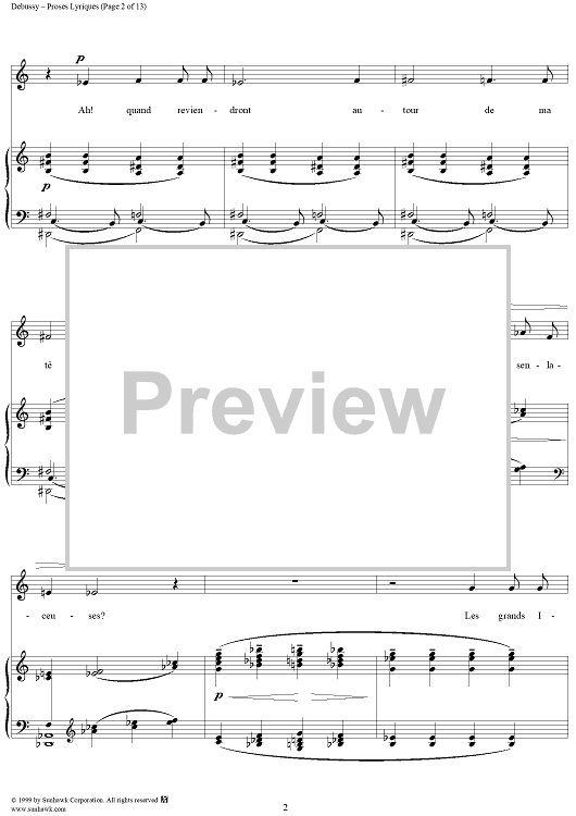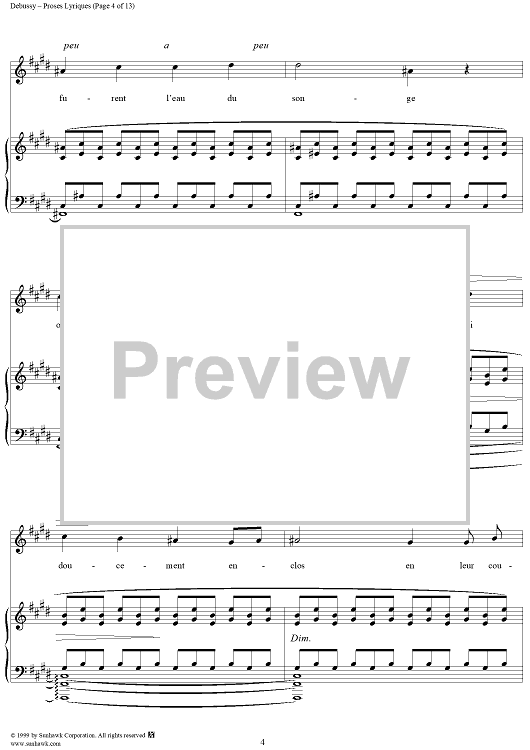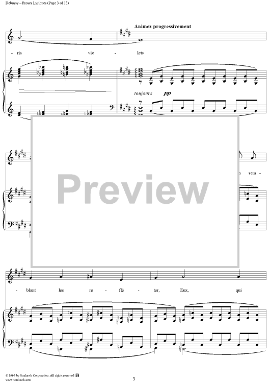 Digital Sheet Music for No. 3: De fleurs: Dans l'ennui si desolement vert by Claude Debussy scored for Voice/Piano; id:271757