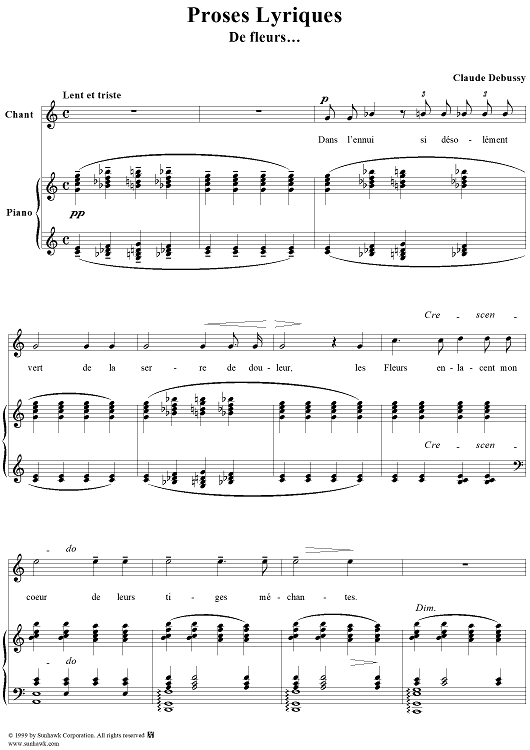 "No. 3: De fleurs: Dans l'ennui si desolement vert" Sheet Music by Claude Debussy