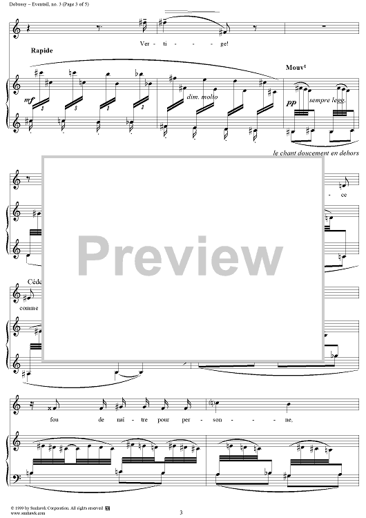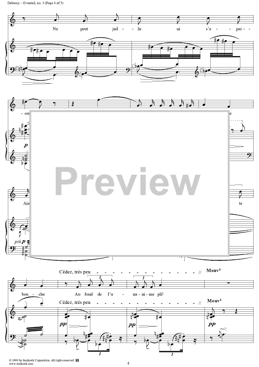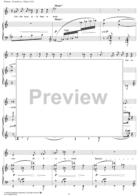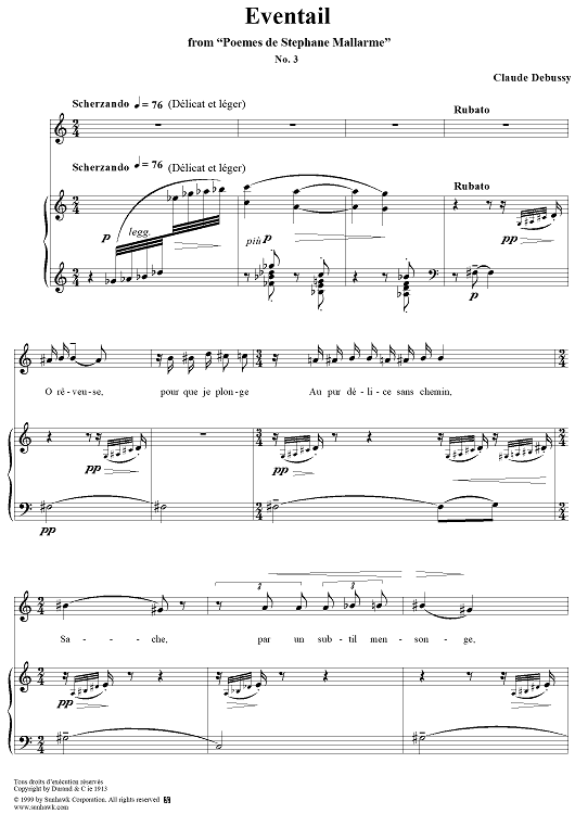 Digital Sheet Music for No. 3: Eventail by Claude Debussy scored for Voice/Piano; id:271749
