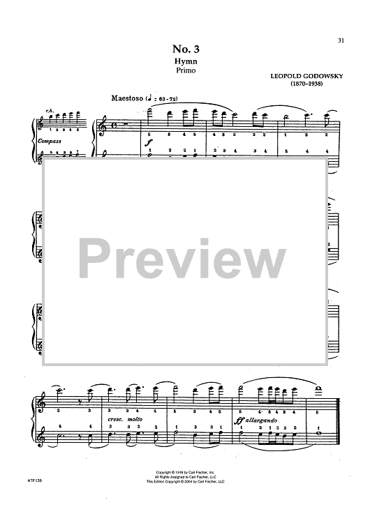 Digital Sheet Music for No. 3 Hymn - from Third Suite by Leopold Godowsky scored for 1 Piano, 4 Hands; id:439574