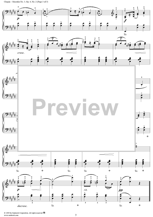 Digital Sheet Music for No. 3 in E Major, Op. 6, No. 3 by Frederic Chopin scored for Piano Solo; id:273036
