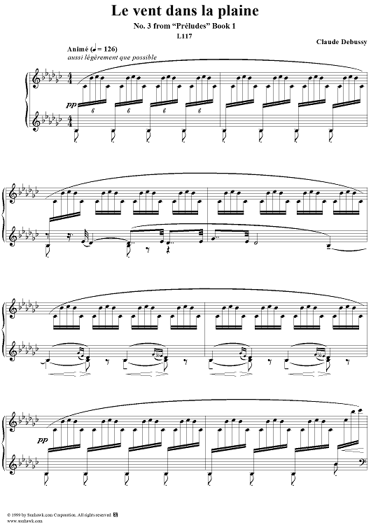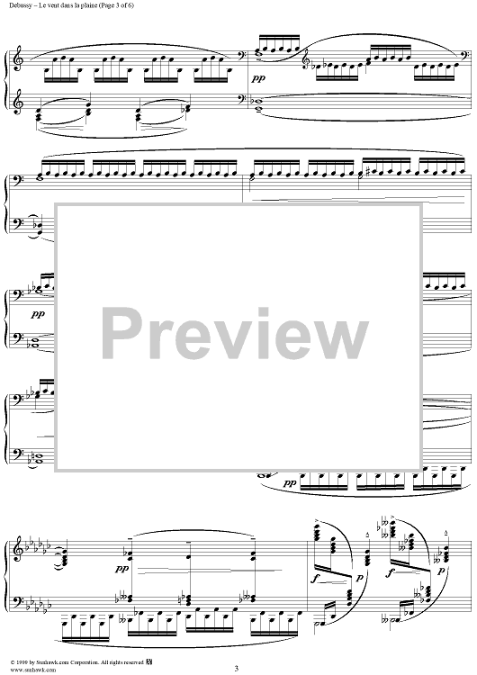 Digital Sheet Music for No. 3: Le vent dans le plaine by Claude Debussy scored for Piano Solo; id:203728