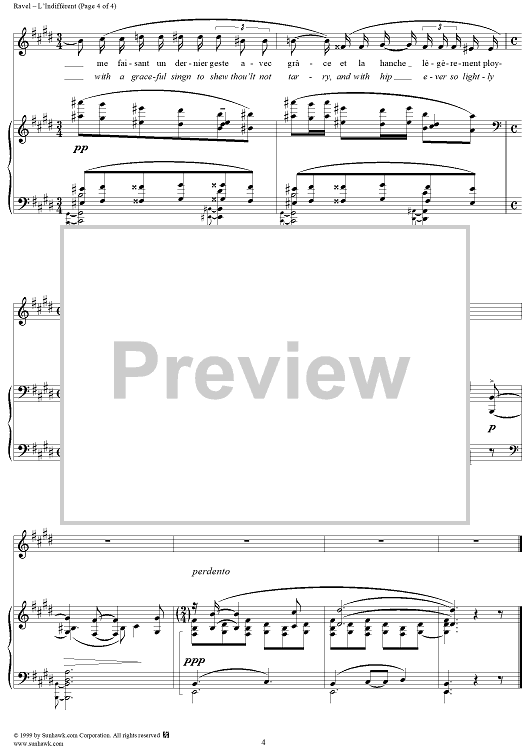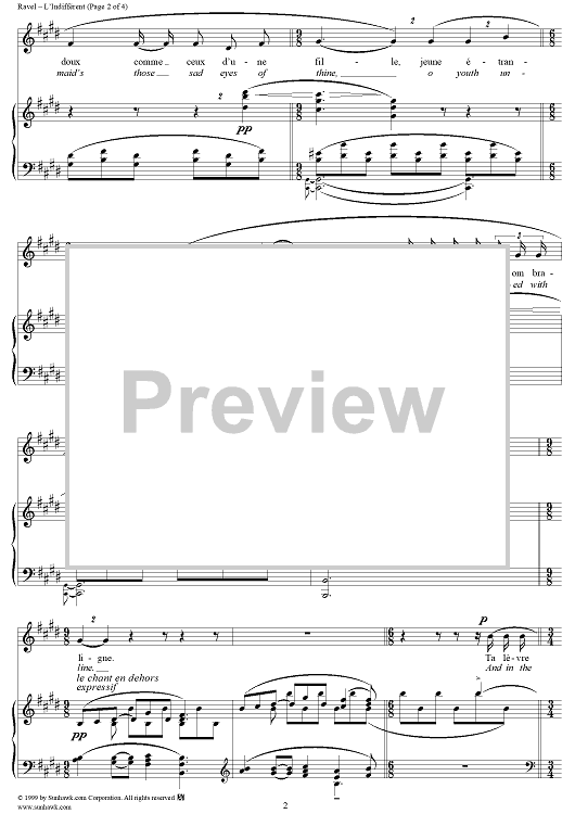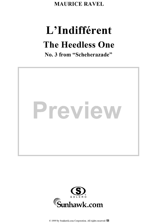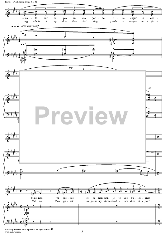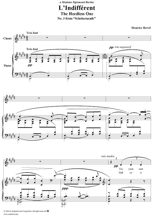 Digital Sheet Music for No. 3: The Heedless One by Tristan Klingsor, Maurice Ravel scored for Voice/Piano; id:256285