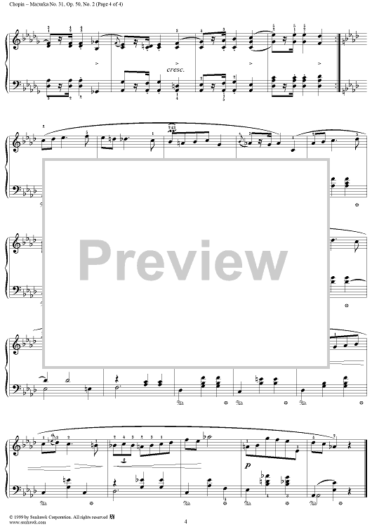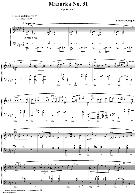 Digital Sheet Music for No. 31 in A-flat Major, Op. 50, No. 2 by Frederic Chopin scored for Piano Solo; id:273194