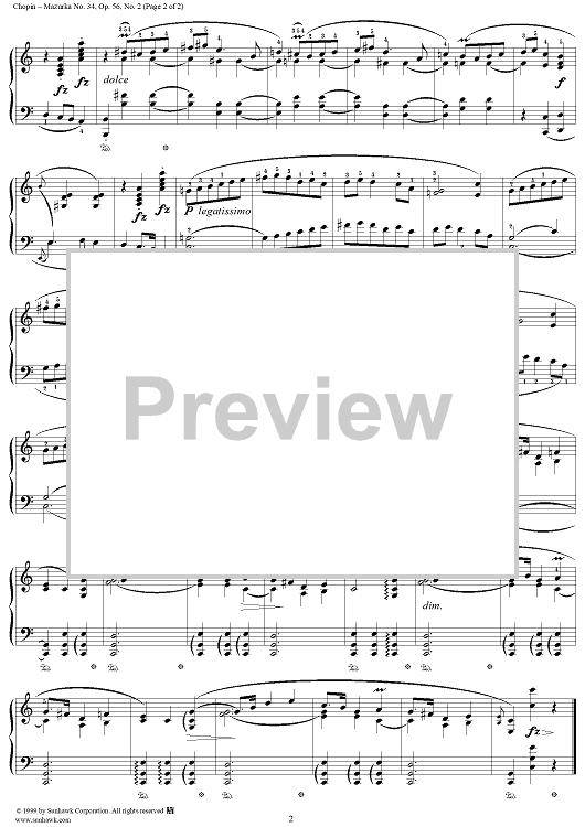 Digital Sheet Music for No. 34 in C Major, Op. 56, No. 2 by Frederic Chopin scored for Piano Solo; id:273089