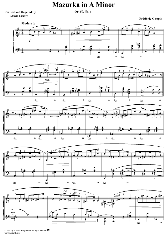Digital Sheet Music for No. 36 in A Minor, Op. 59, No. 1 by Frederic Chopin scored for Piano Solo; id:118089