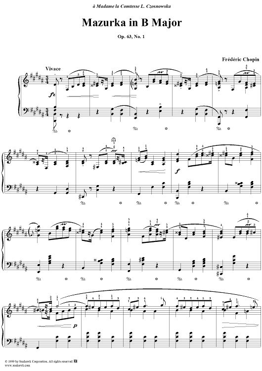 Digital Sheet Music for No. 39 in B Major, Op. 63, No. 1 by Frederic Chopin scored for Piano Solo; id:118072