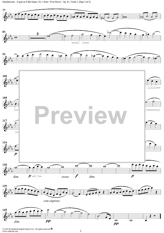 "No. 4: Fuga - Violin 1" Sheet Music by Felix Mendelssohn