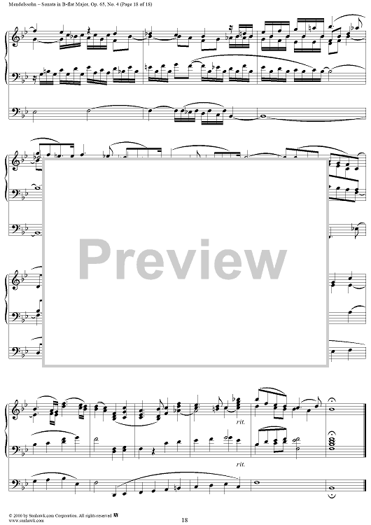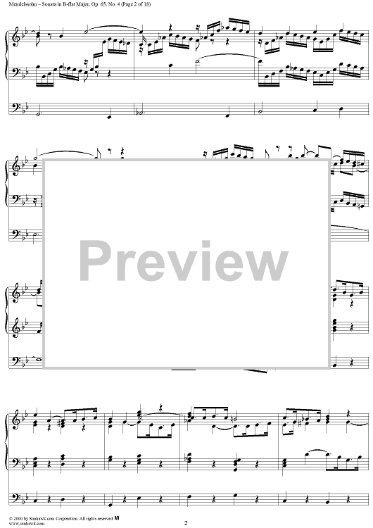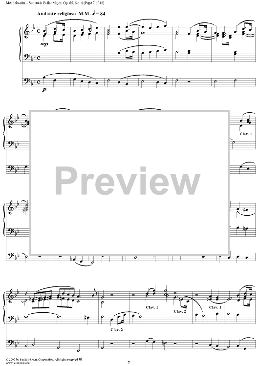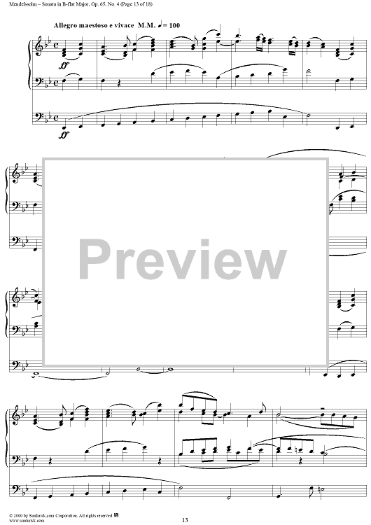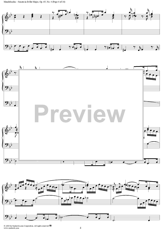 Digital Sheet Music for No. 4 in B-flat Major by Felix Mendelssohn scored for Organ Solo; id:252067