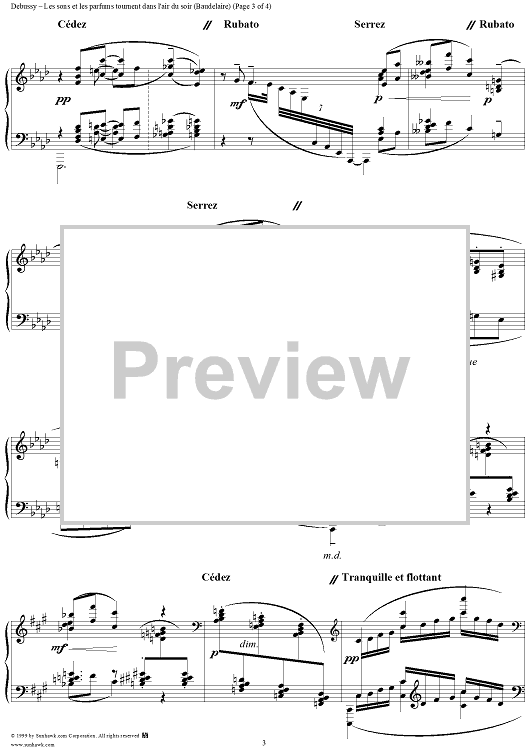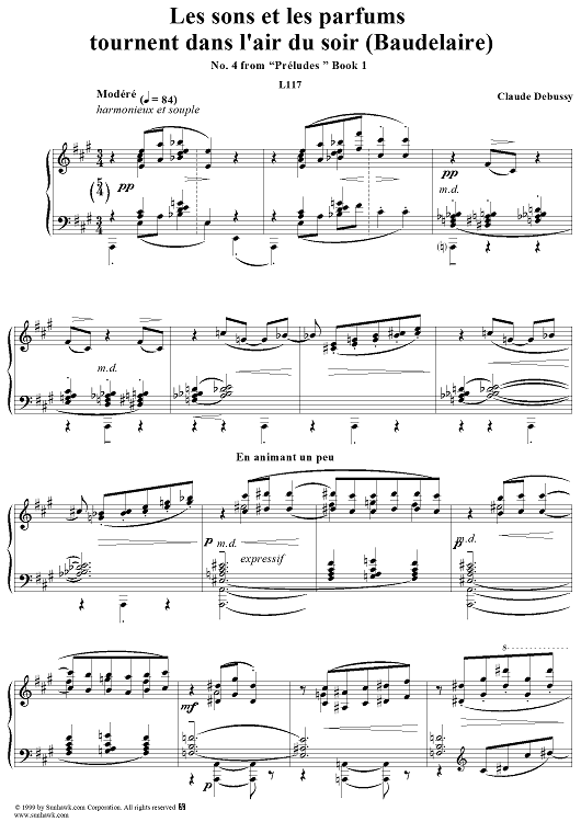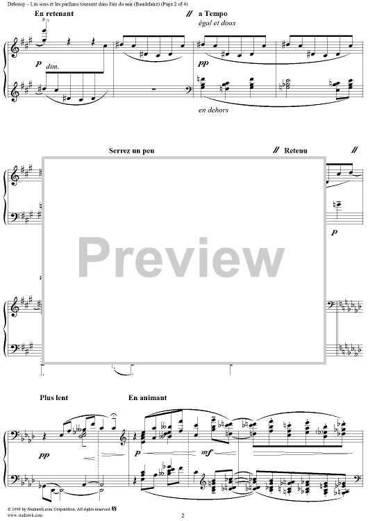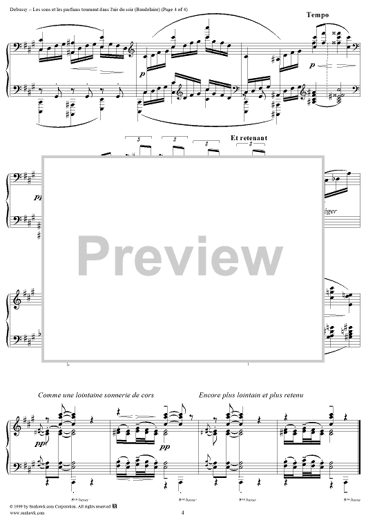 Digital Sheet Music for No. 4: Les sons et les parfums tournent dans l'air du soir by Claude Debussy scored for Piano Solo; id:240968