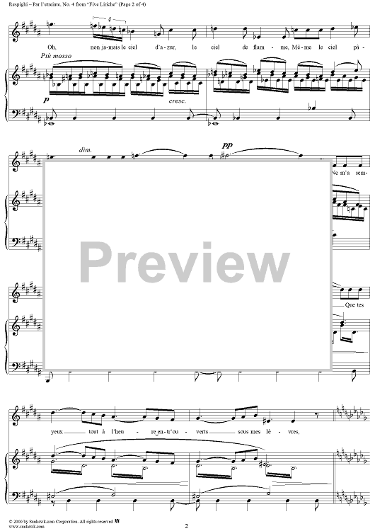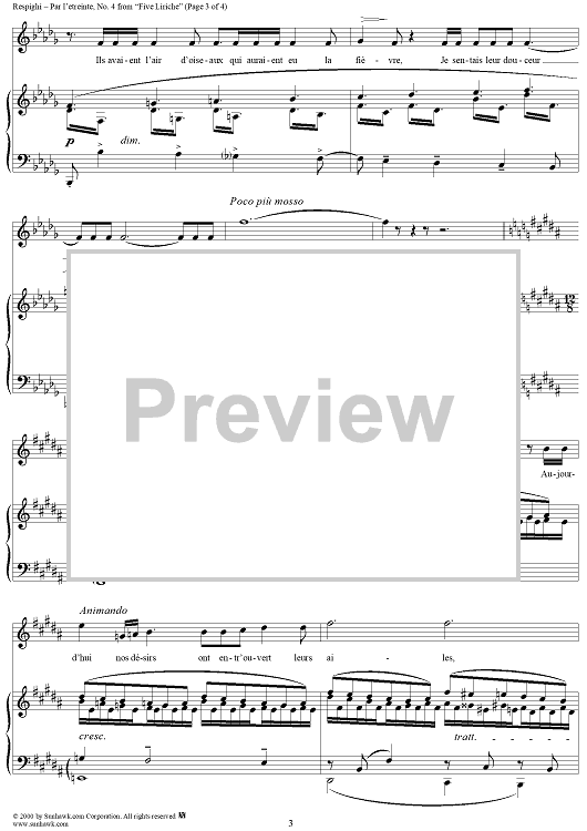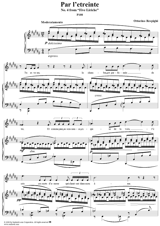 Digital Sheet Music for No. 4: Par l'étreinte by Ottorino Respighi, Fersen scored for Voice/Piano; id:255480