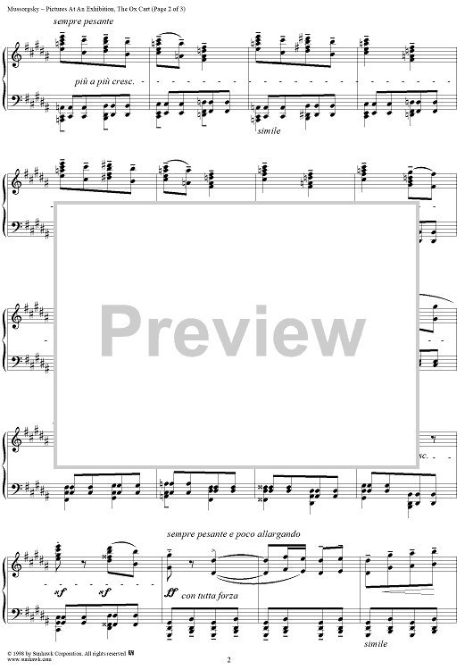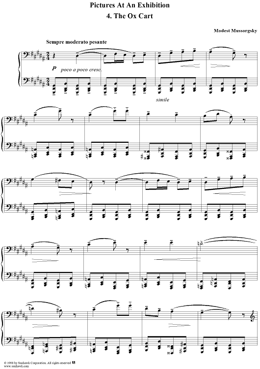 Digital Sheet Music for No. 4: The Ox Cart by Modest Musorgsky scored for Piano Solo; id:109953