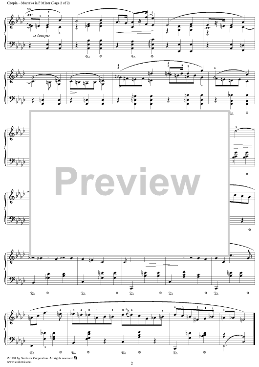 Digital Sheet Music for No. 40 in F Minor, Op. 63, No. 2 by Frederic Chopin scored for Piano Solo; id:118036