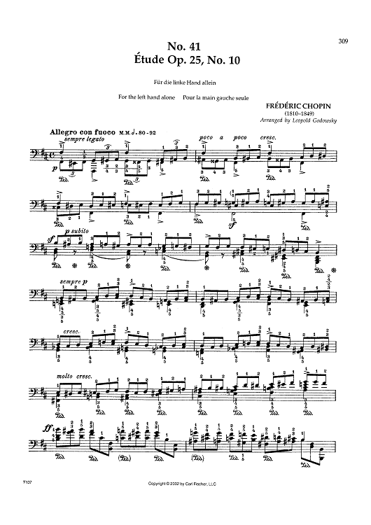 Digital Sheet Music for No. 41 - Étude Op. 25, No. 10 by Frederic Chopin, Leopold Godowsky scored for Piano Solo; id:438394
