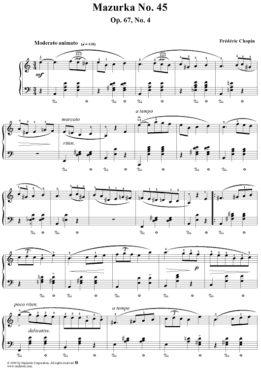 "No. 45 in A Minor, Op. 67, No. 4" Sheet Music by Frederic Chopin