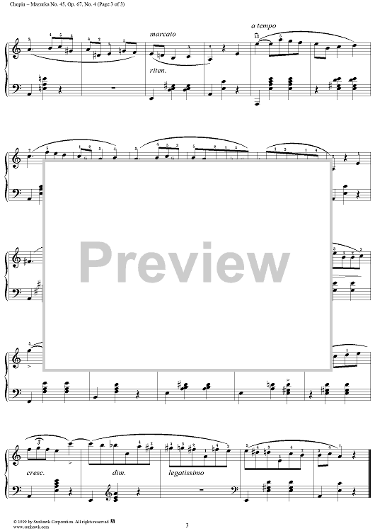 Digital Sheet Music for No. 45 in A Minor, Op. 67, No. 4 by Frederic Chopin scored for Piano Solo; id:113191