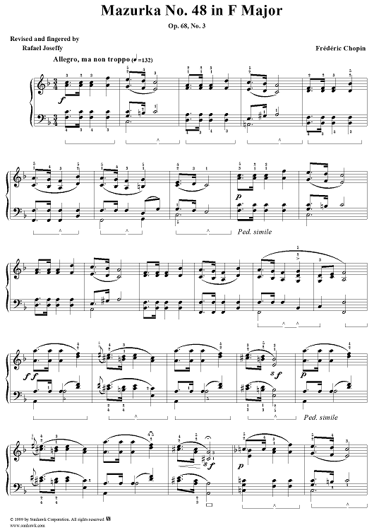 Digital Sheet Music for No. 48 in F Major, Op. 68, No. 3 by Frederic Chopin scored for Piano Solo; id:249765