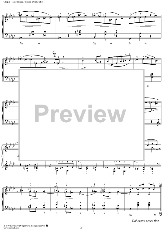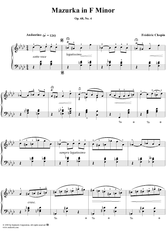 Digital Sheet Music for No. 49 in F Minor, Op. 68, No. 4 by Frederic Chopin scored for Piano Solo; id:118046