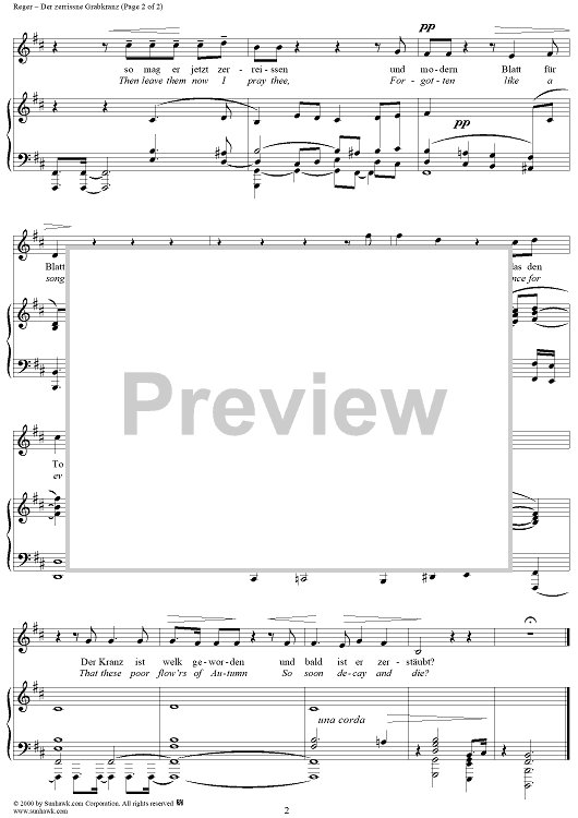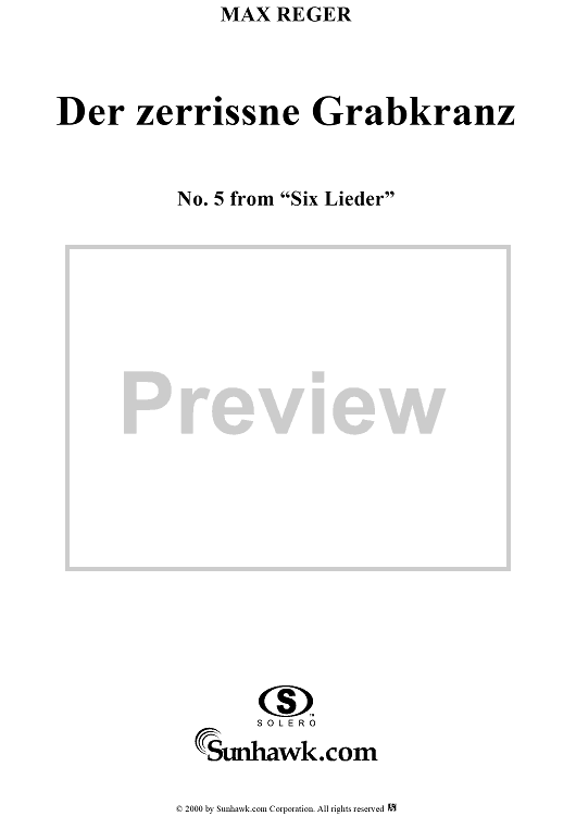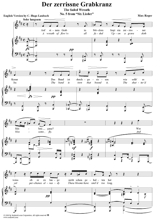 Digital Sheet Music for No. 5: Der zerrissne Grabkranz (The Faded Wreath) by Max Reger scored for Voice/Piano; id:255564