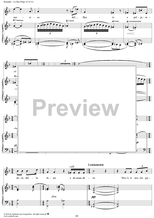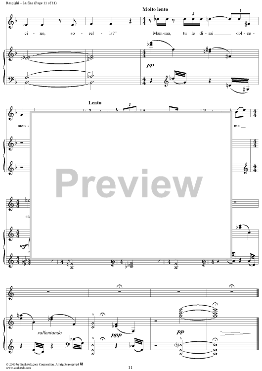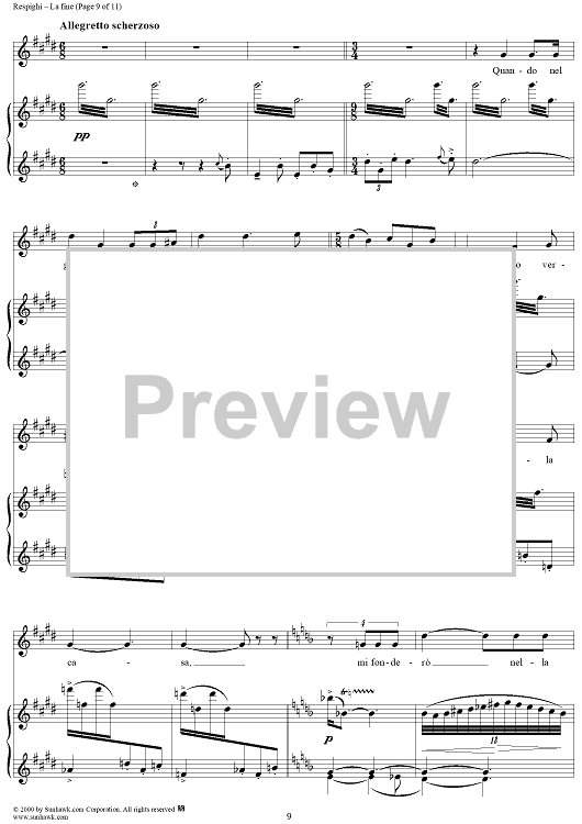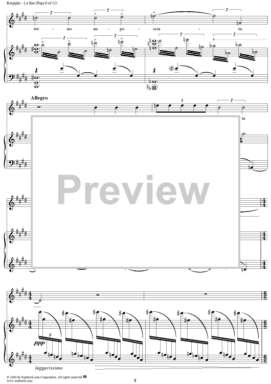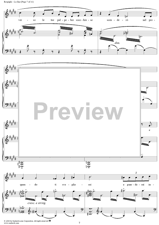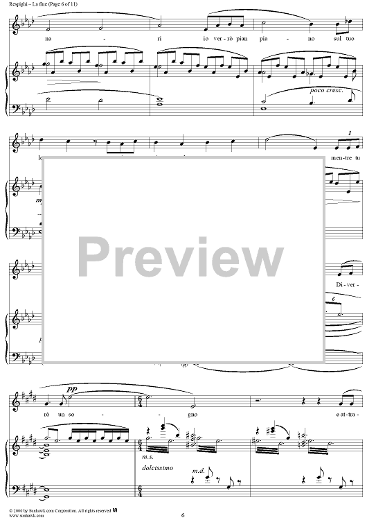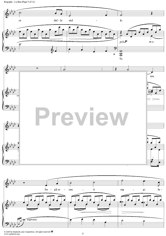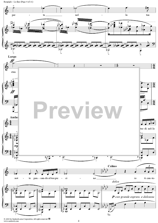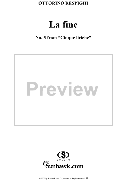 Digital Sheet Music for No. 5: La fine by Ottorino Respighi, Tagore scored for Voice/Piano; id:255481