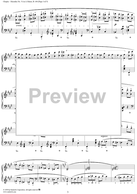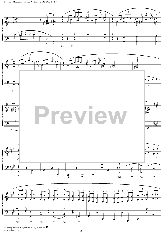 Digital Sheet Music for No. 51 in A Minor by Frederic Chopin scored for Piano Solo; id:118028