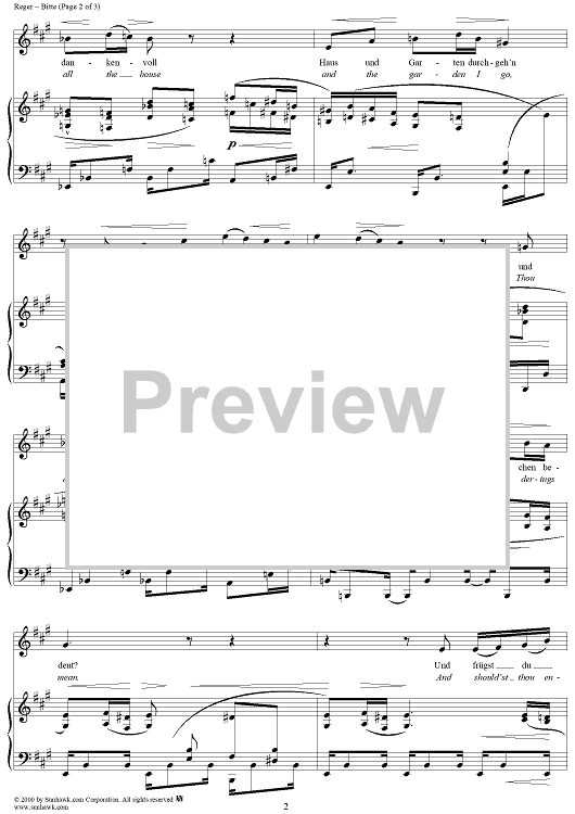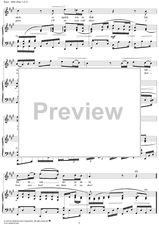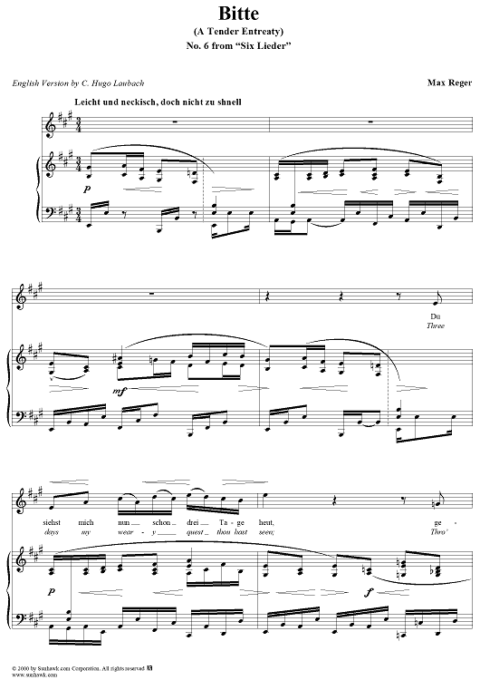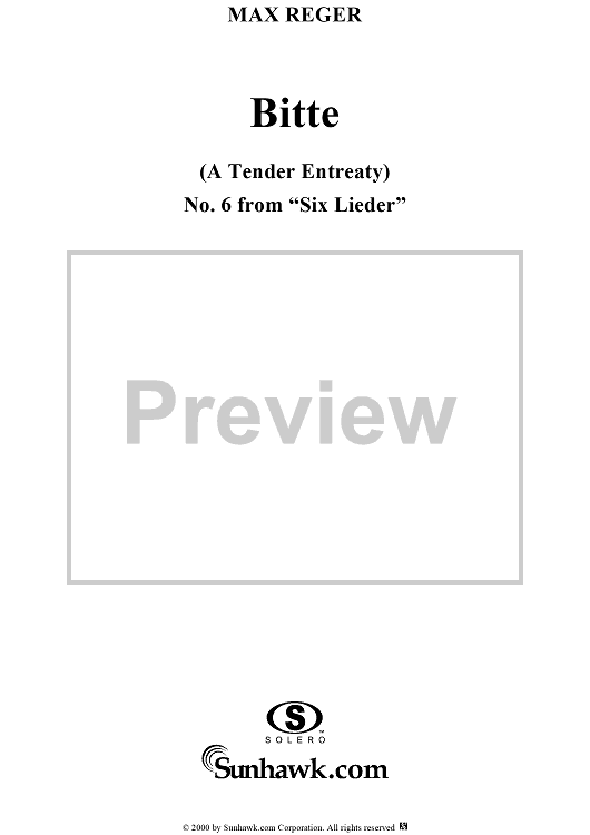 Digital Sheet Music for No. 6: Bitte (A Tender Entreaty) by Max Reger scored for Voice/Piano; id:255556