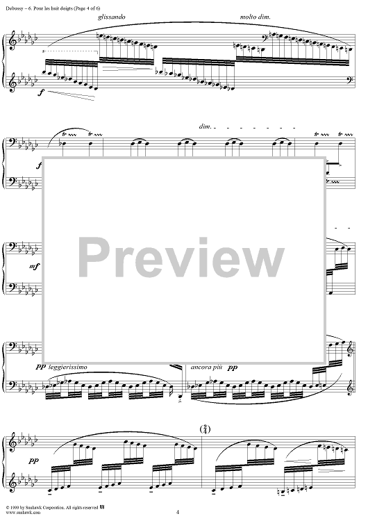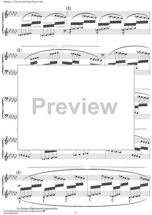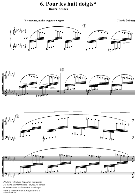 Digital Sheet Music for No. 6: Pour les Huit Doigts by Claude Debussy scored for Piano Solo; id:117990