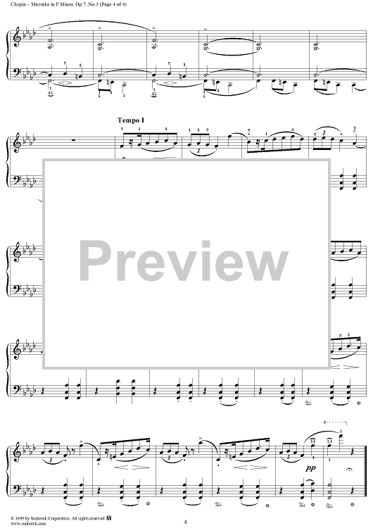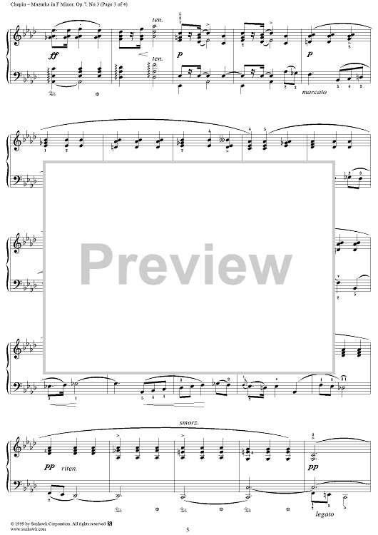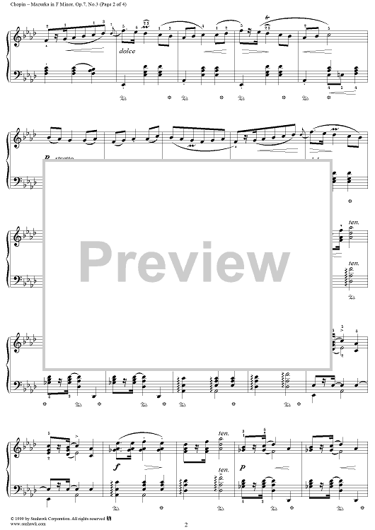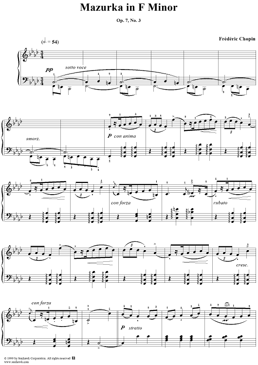 Digital Sheet Music for No. 7 in F Minor, Op. 7, No. 3 by Frederic Chopin scored for Piano Solo; id:118026
