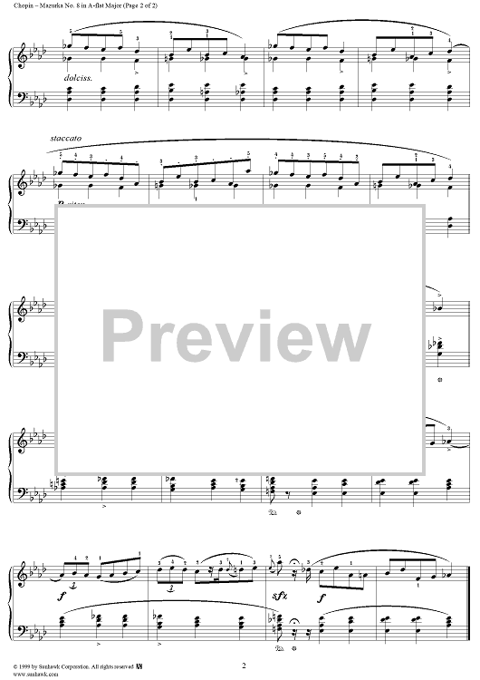 Digital Sheet Music for No. 8 in A-flat Major, Op. 7, No. 4 by Frederic Chopin scored for Piano Solo; id:118040