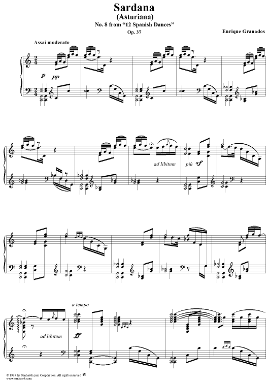 Digital Sheet Music for No. 8: Sardana (Asturiana) by Enrique Granados scored for Piano Solo; id:267884