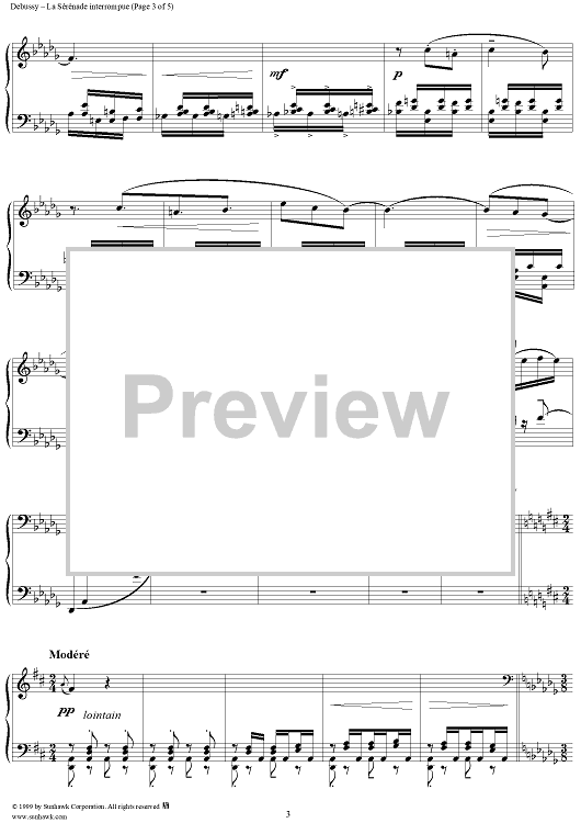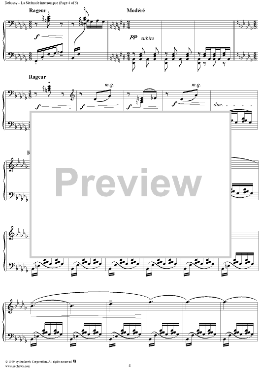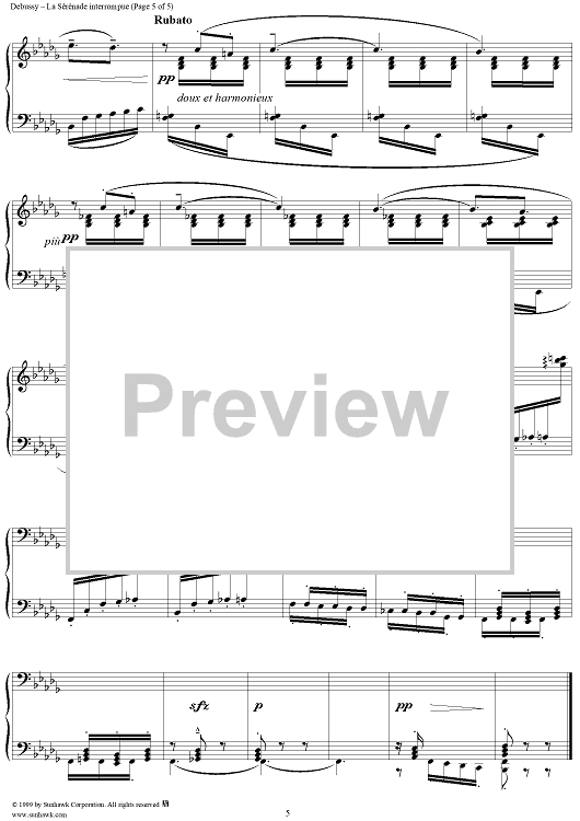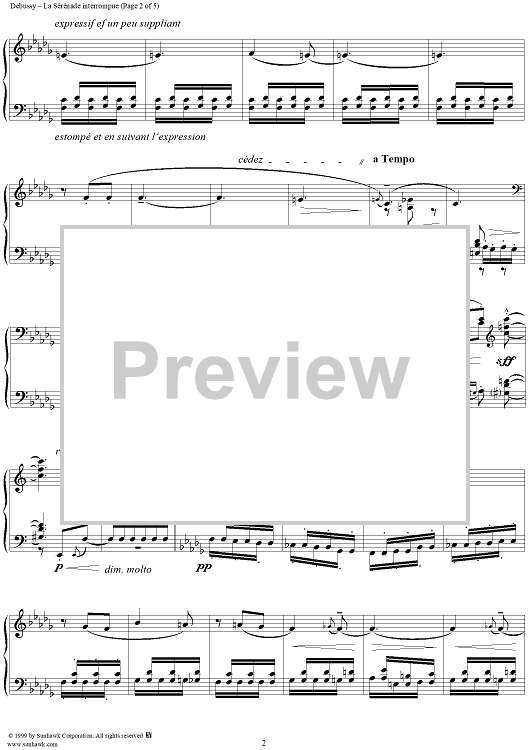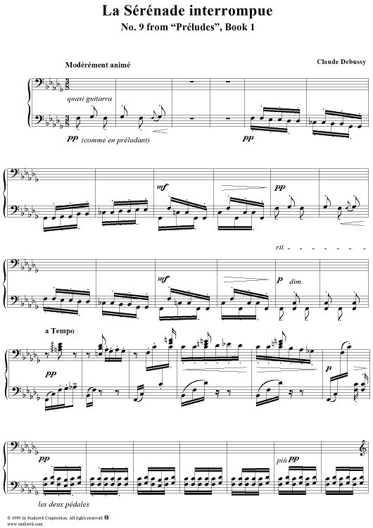 Digital Sheet Music for No. 9: La Sérénade Interrompue by Claude Debussy scored for Piano Solo; id:117951