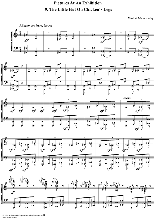 Digital Sheet Music for No. 9: The Little Hut on Chicken's Legs by Modest Musorgsky scored for Piano Solo; id:114182