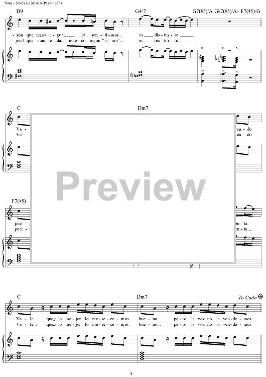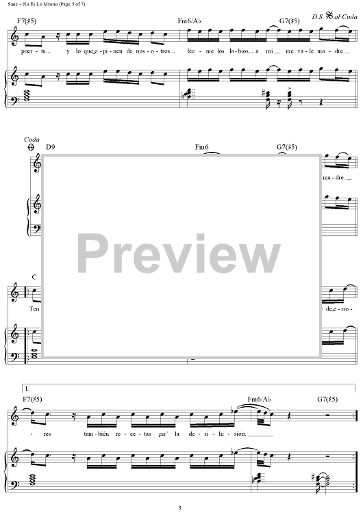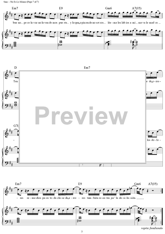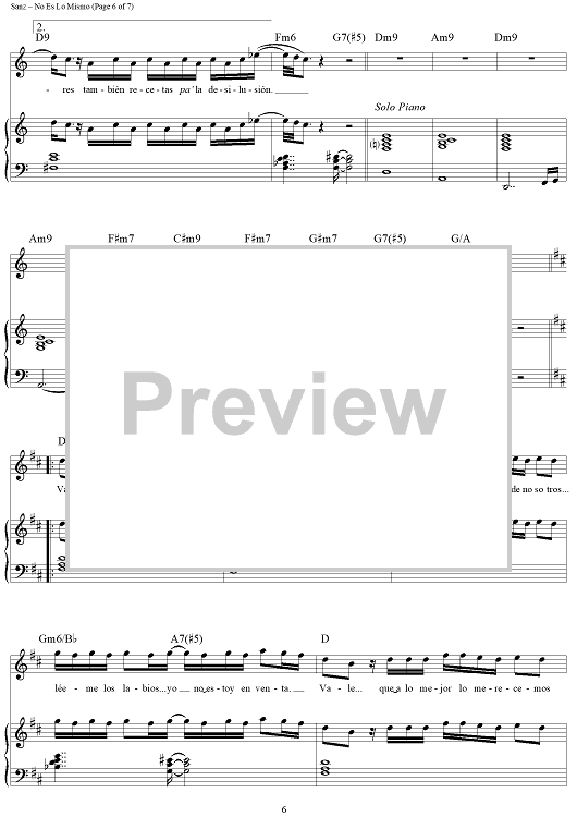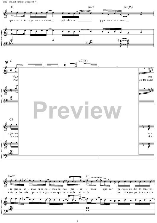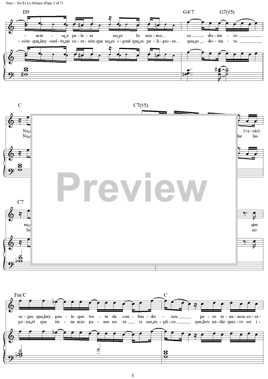 Digital Sheet Music for No Es Lo Mismo by Alejandro Sanz scored for Piano/Vocal/Chords; id:445583