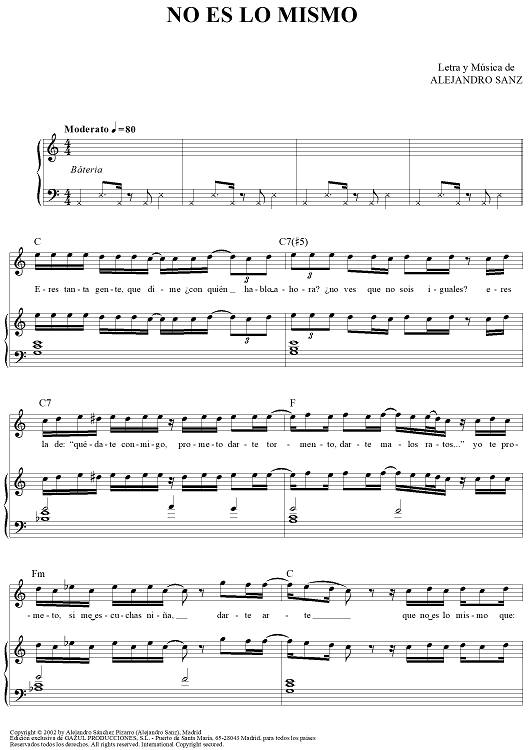 "No Es Lo Mismo" Sheet Music by Alejandro Sanz