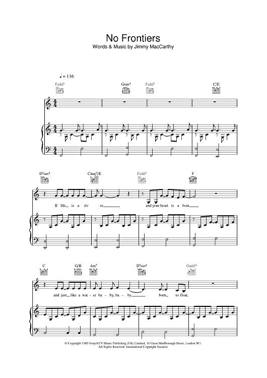 Digital Sheet Music for No Frontiers by The Corrs, Jimmy MacCarthy scored for Piano/Vocal/Chords; id:379009
