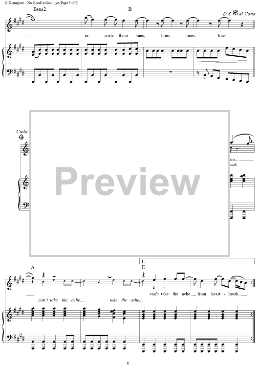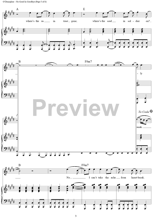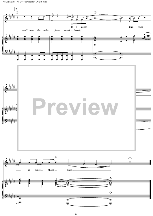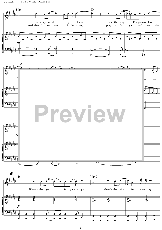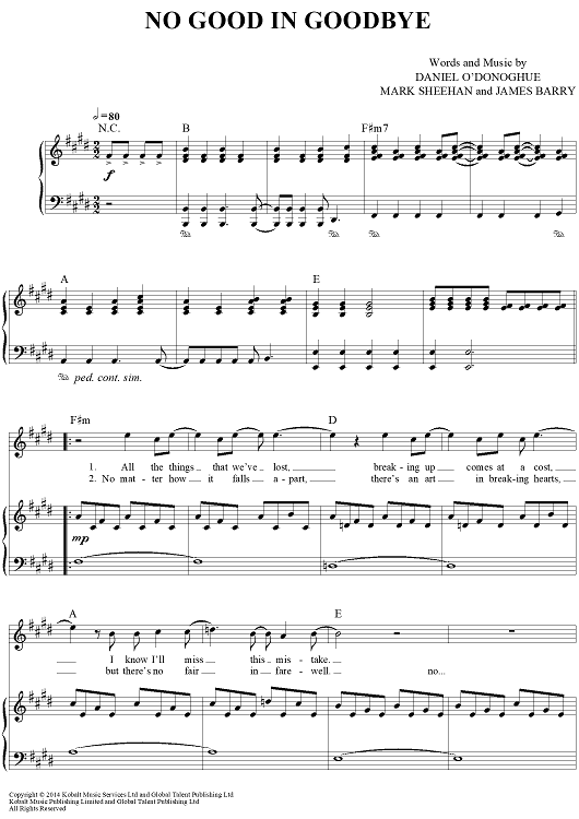 Digital Sheet Music for No Good In Goodbye by The Script, Mark Sheehan, Daniel O'Donoghue, James Barry scored for Piano/Vocal/Chords; id:444666