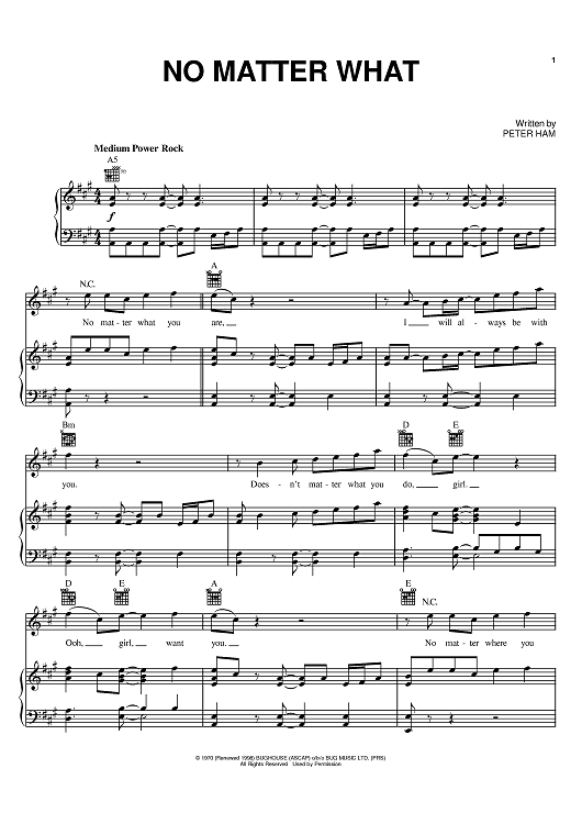 Digital Sheet Music for No Matter What by Badfinger, Peter Ham scored for Piano/Vocal/Chords; id:398074