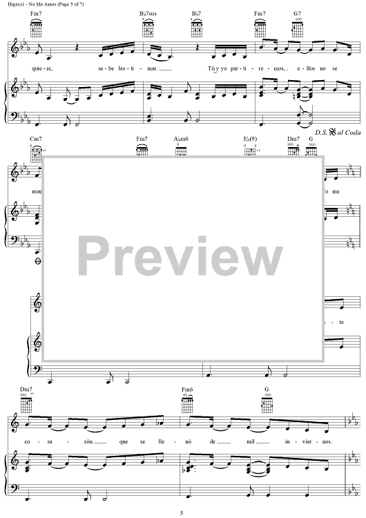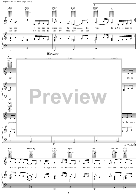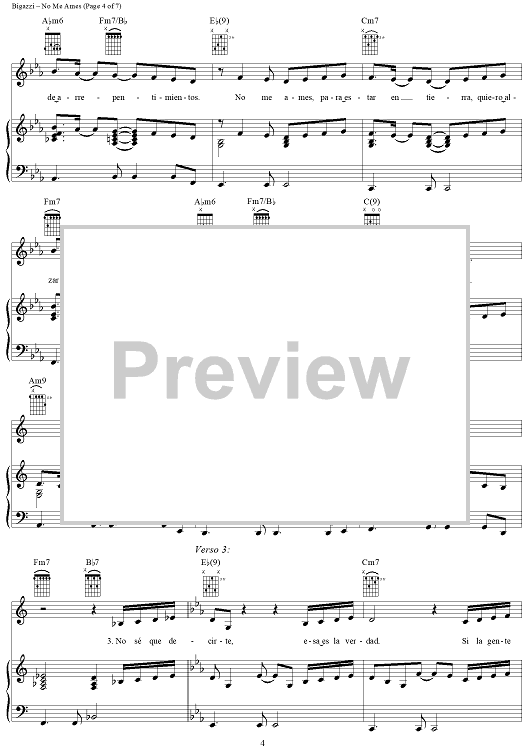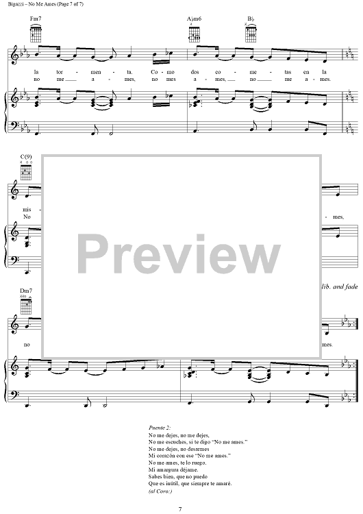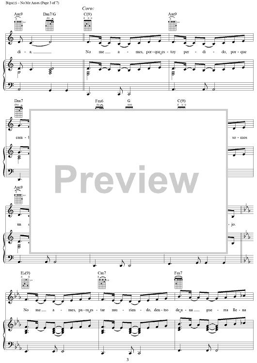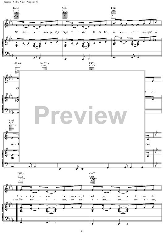 Digital Sheet Music for No Me Ames by Marc Anthony, Jennifer Lopez, Marco Falagiani, Aleandro Baldi, Giancarlo Bigazzi scored for Piano/Vocal/Chords; id:275370