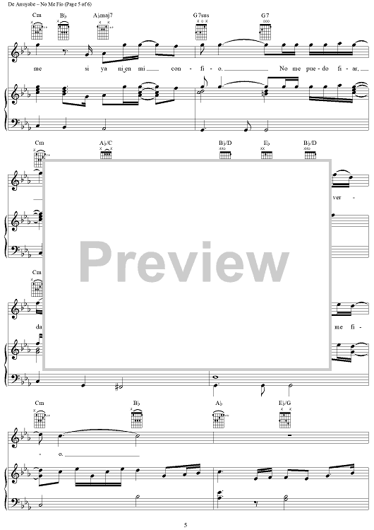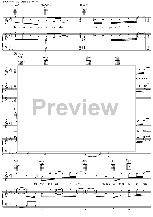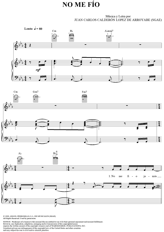 Digital Sheet Music for No Me Fio by Luis Miguel, Juan Carlos Calderon scored for Piano/Vocal/Chords; id:234055