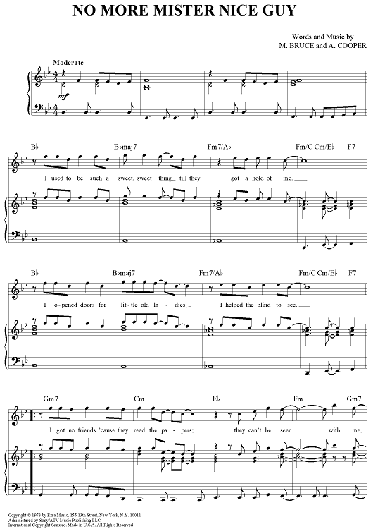 Digital Sheet Music for No More Mister Nice Guy by Alice Cooper, Michael Bruce scored for Piano/Vocal/Chords; id:361663