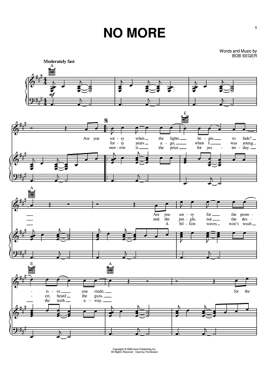 Digital Sheet Music for No More by Bob Seger scored for Piano/Vocal/Chords; id:397712
