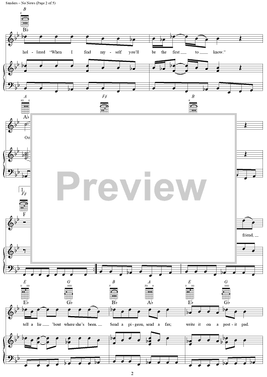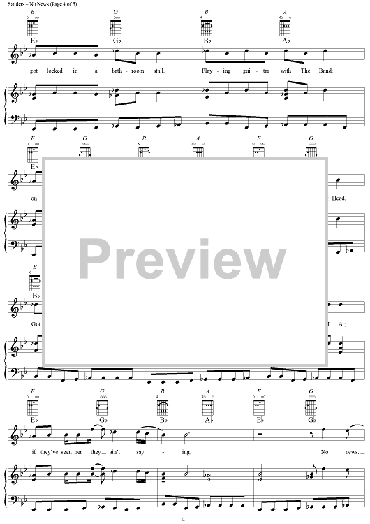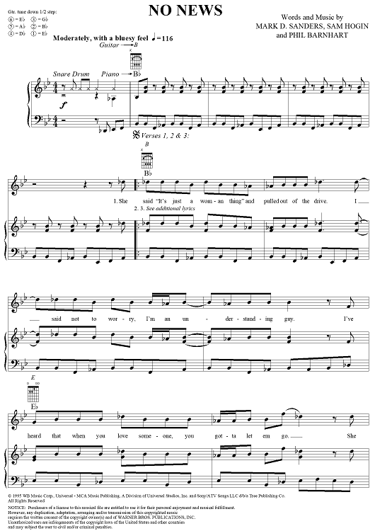 Digital Sheet Music for No News by Lonestar, Mark D. Sanders, Sam Hogin, Phil Barnhart scored for Piano/Vocal/Chords; id:304276