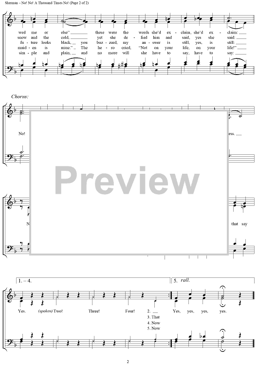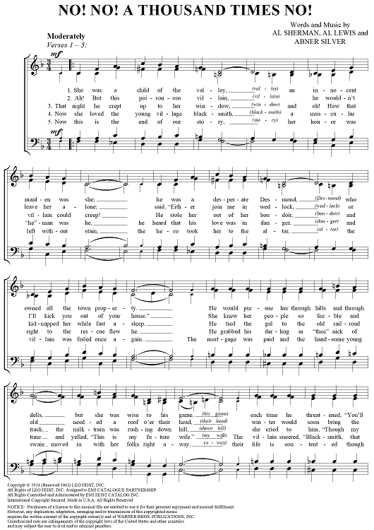 Digital Sheet Music for No! No! A Thousand Times No! by Al Lewis, Allan Sherman, Abner Silver scored for Barbershop Quartet; id:240646
