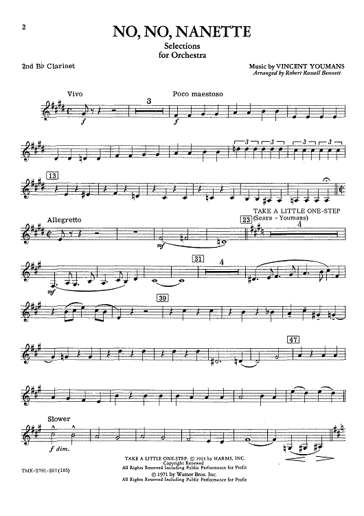 "No, No, Nannette - Selections for Orchestra - Clarinet 2 in Bb" Sheet Music by Vincent Youmans