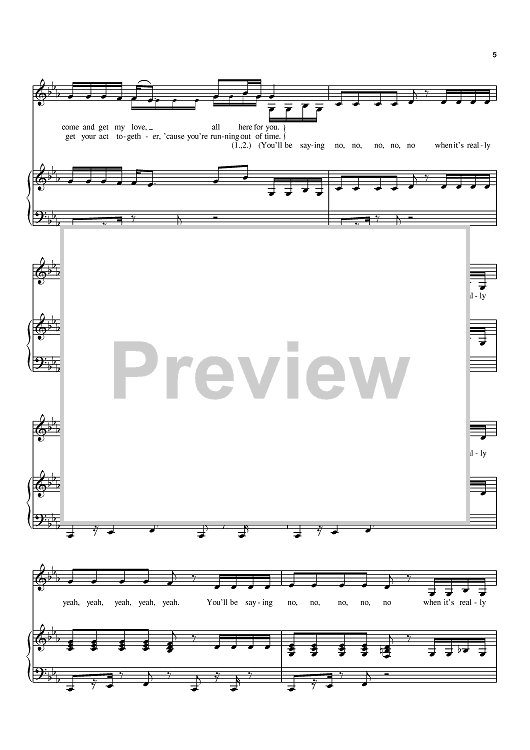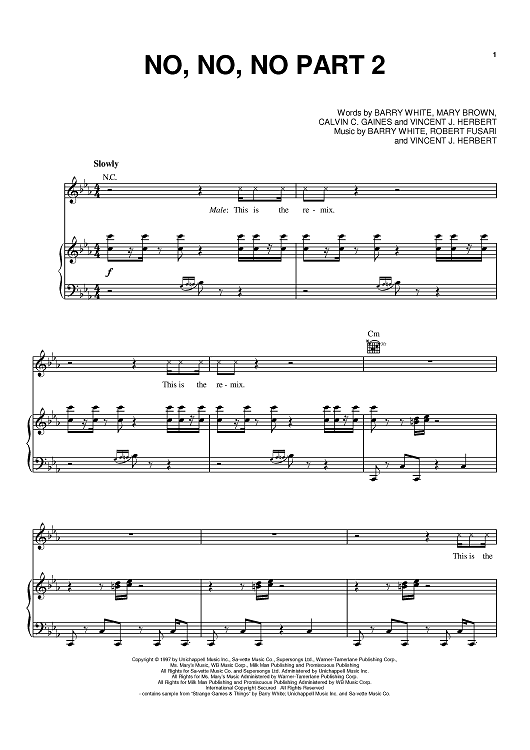 Digital Sheet Music for No, No, No Part II by Destiny's Child, Vincent Herbert, Mary Brown, Rob Fusari, Calvin C. Gaines, Barry White scored for Piano/Vocal/Chords; id:390500