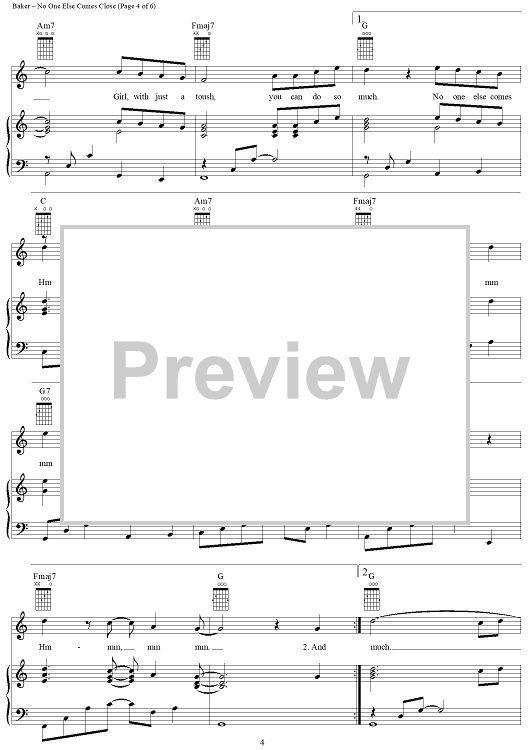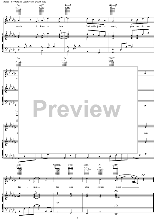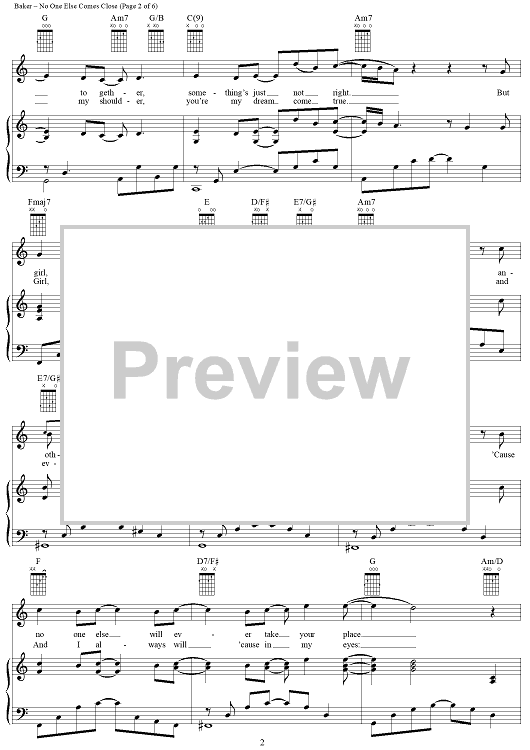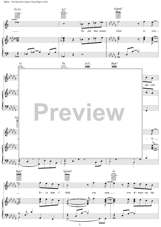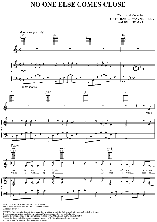 Digital Sheet Music for No One Else Comes Close by Gary Baker, Wayne Perry, Joe Thomas, Backstreet Boys scored for Piano/Vocal/Chords; id:275371
