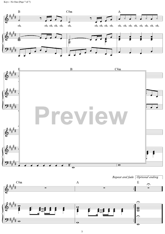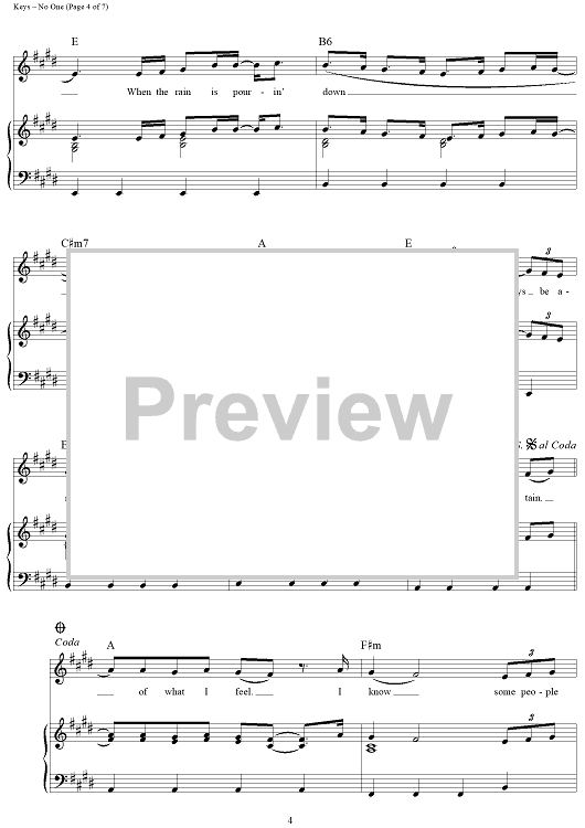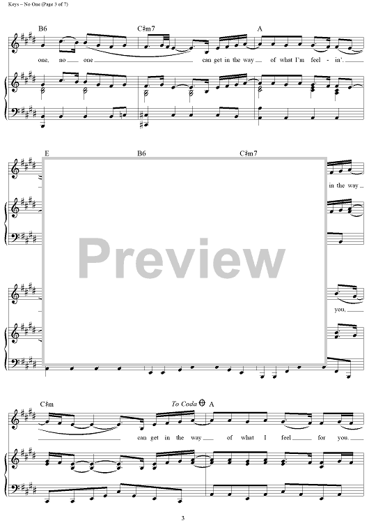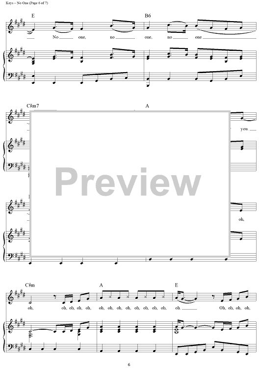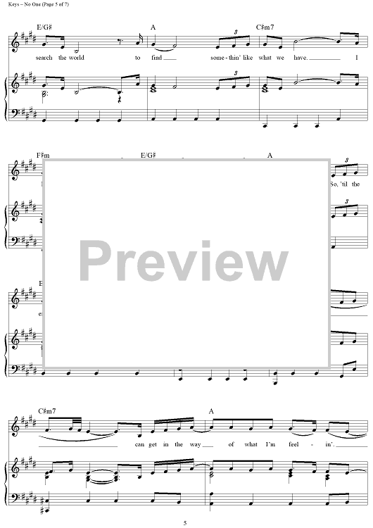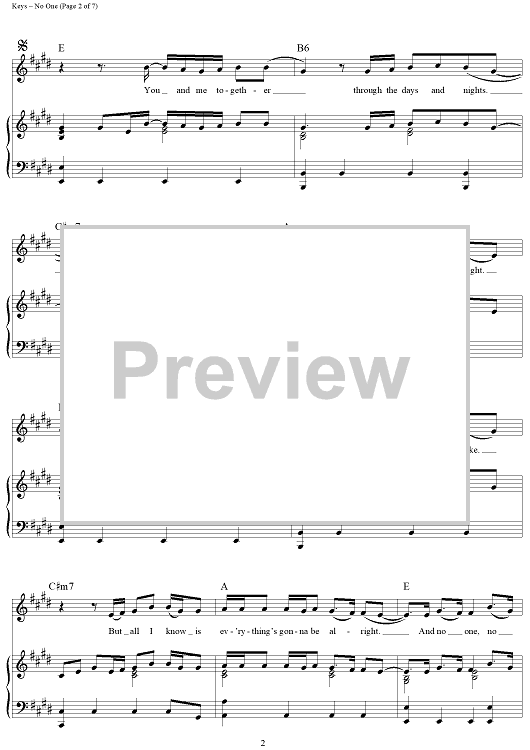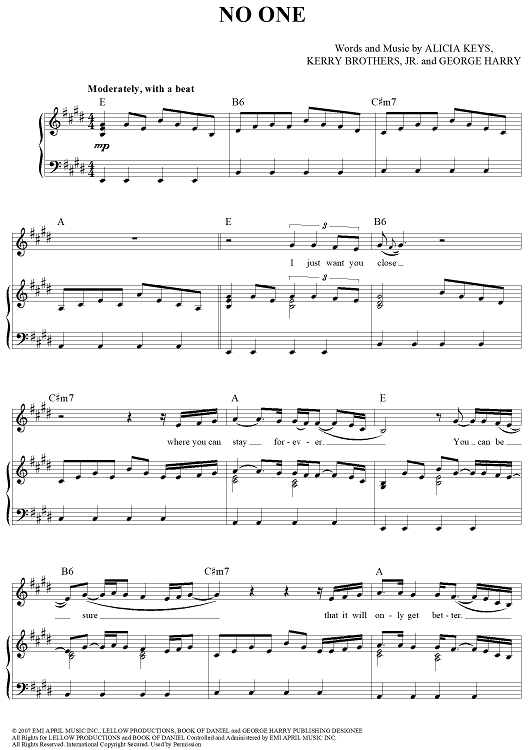 Digital Sheet Music for No One by Alicia Keys, Kerry Brothers, Jr., George Harry scored for Piano/Vocal/Chords; id:365367